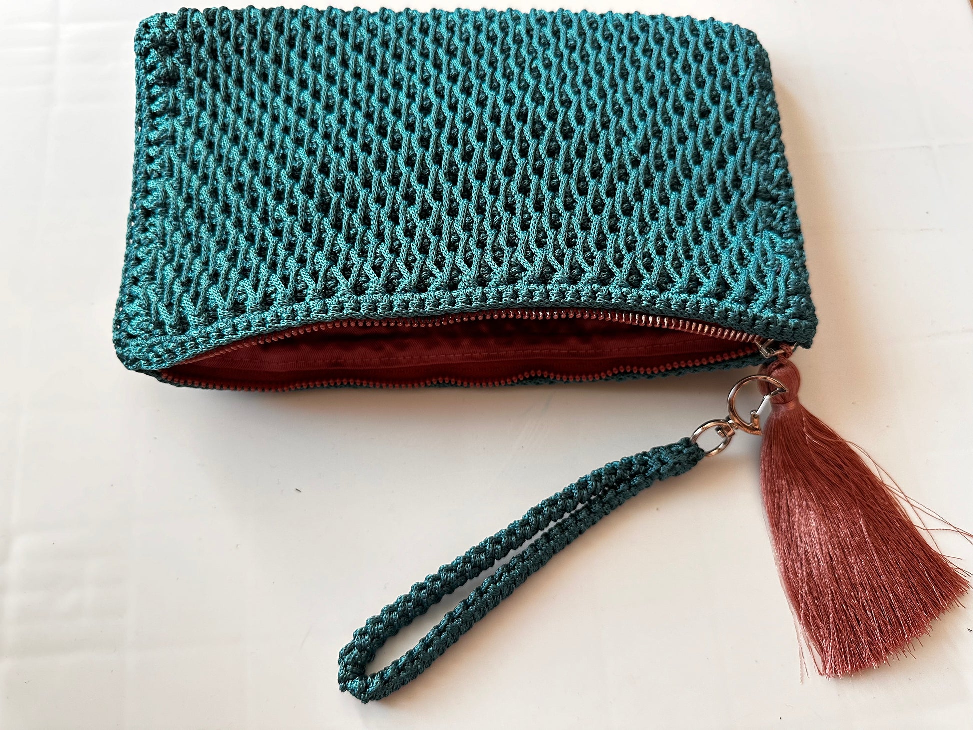 Turquoise Hand-Crocheted Luxury Clutch Bag