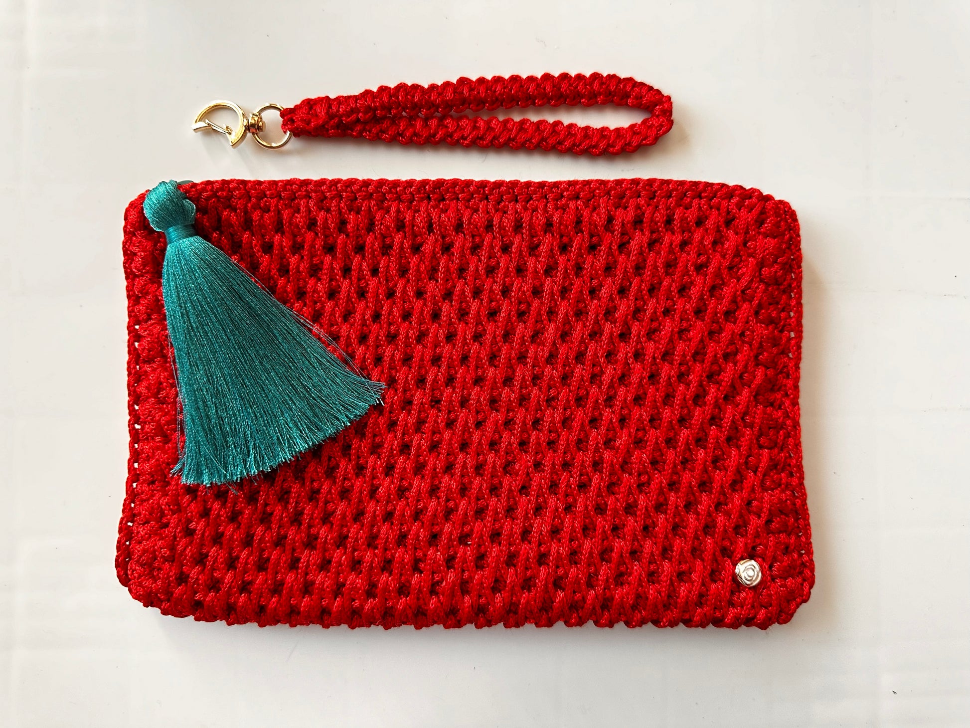 Red Hand-Crocheted Luxury Clutch Bag
